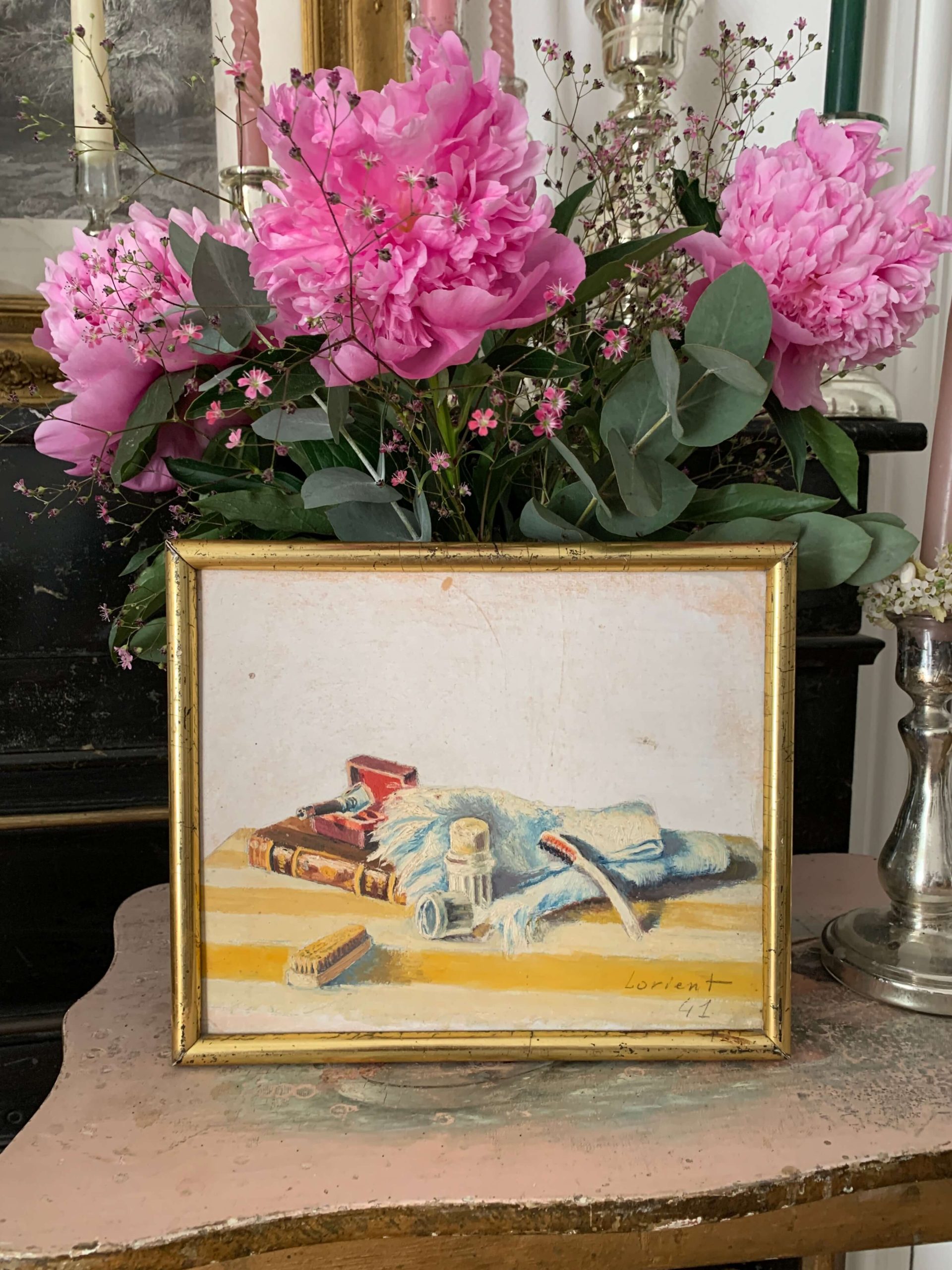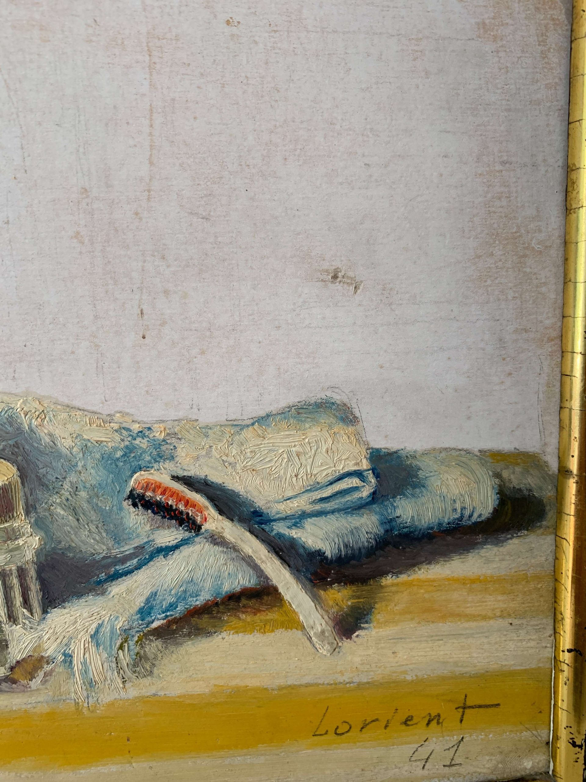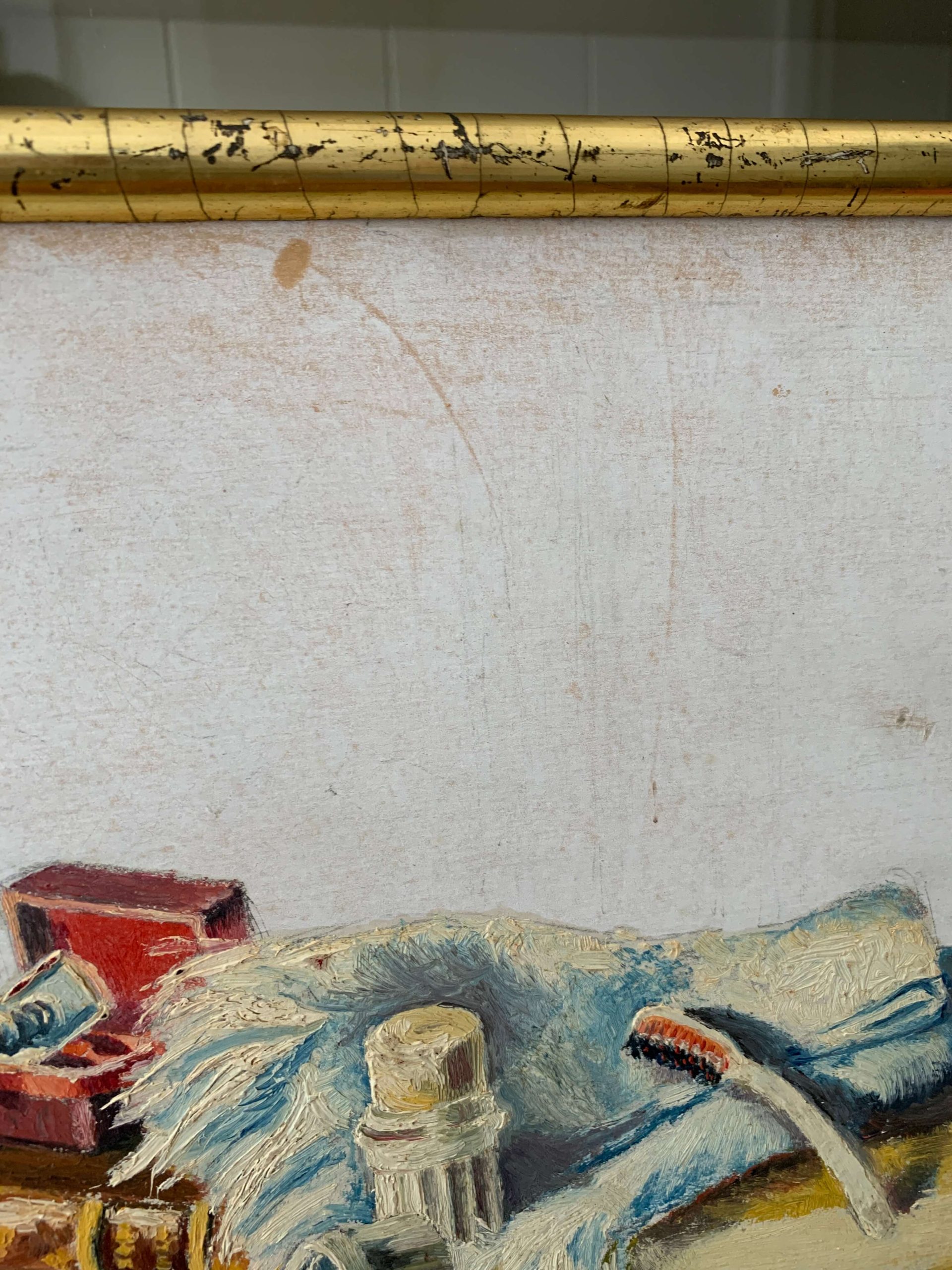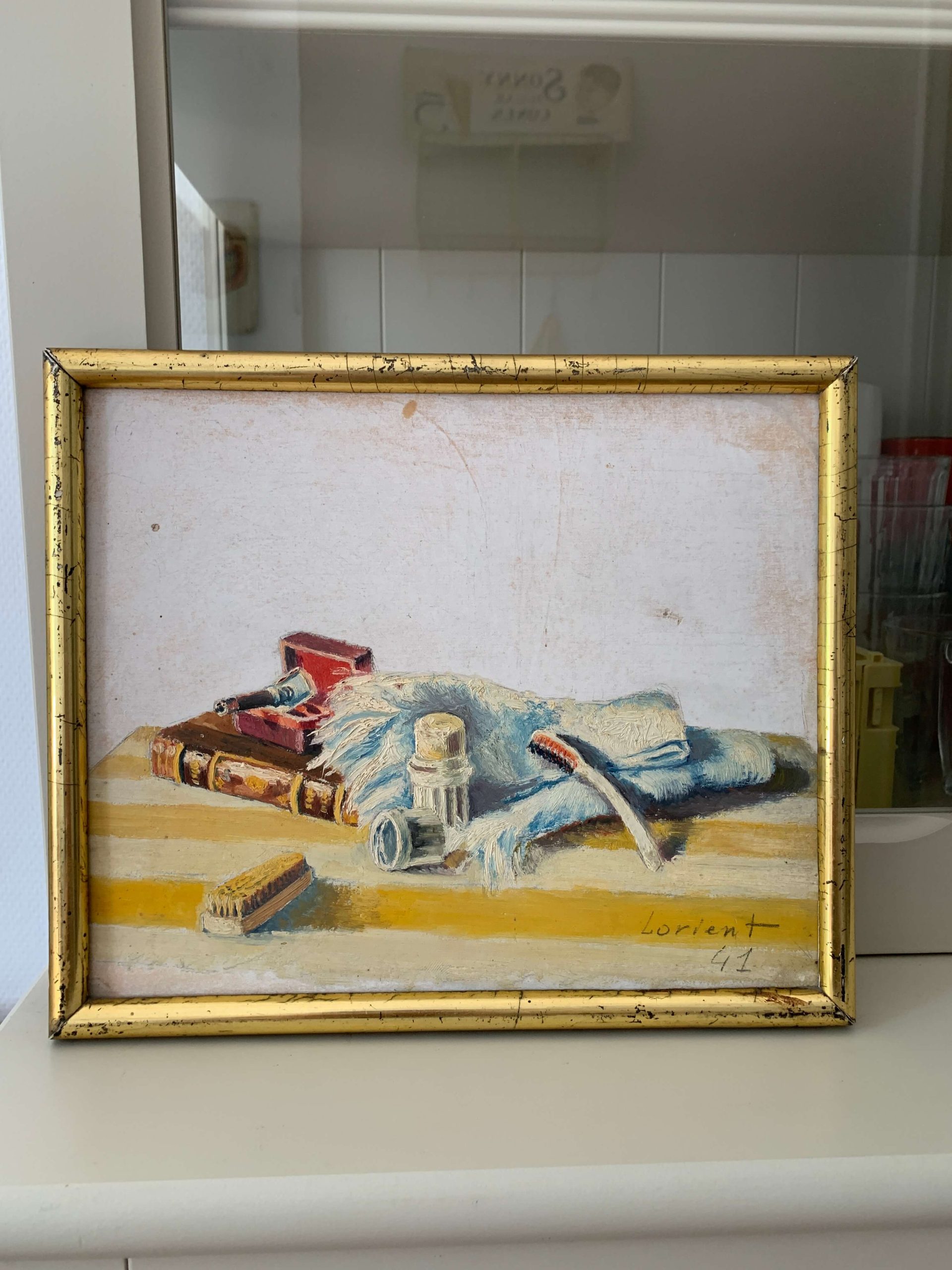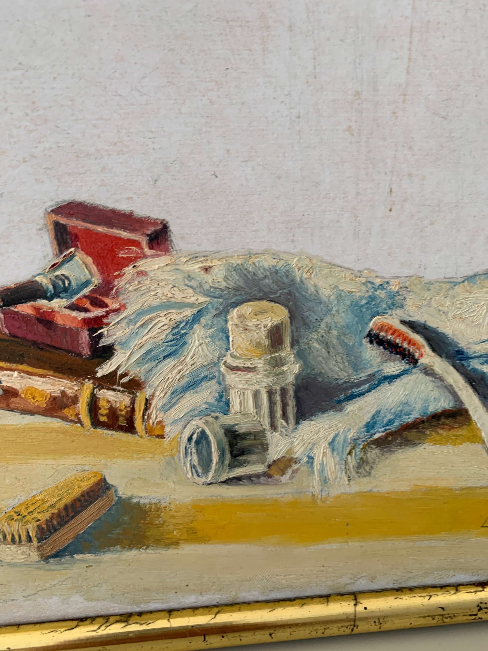 Rupture de stockAdorable nature morte ancienne représentant un nécessaire de rasage.