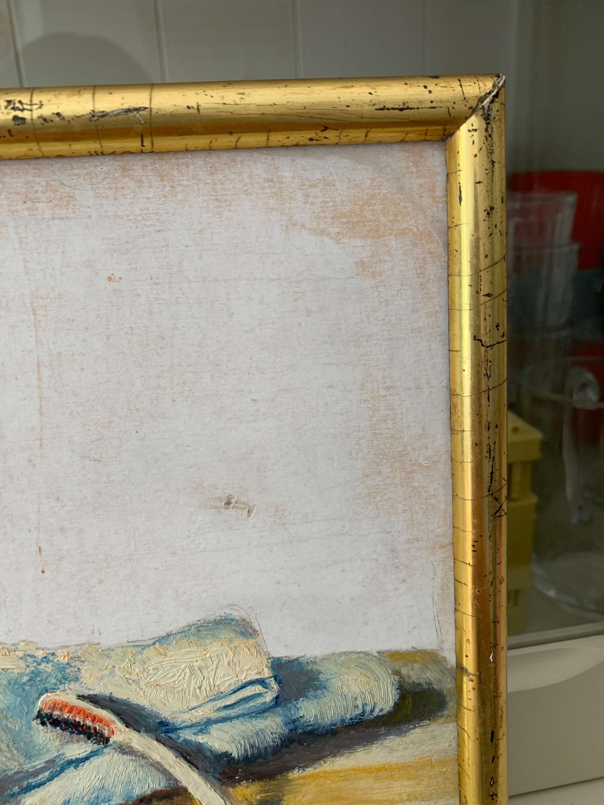 Traces du temps visibles. (Traces, taches, manques de peinture, traces et manques sur le cadre…)