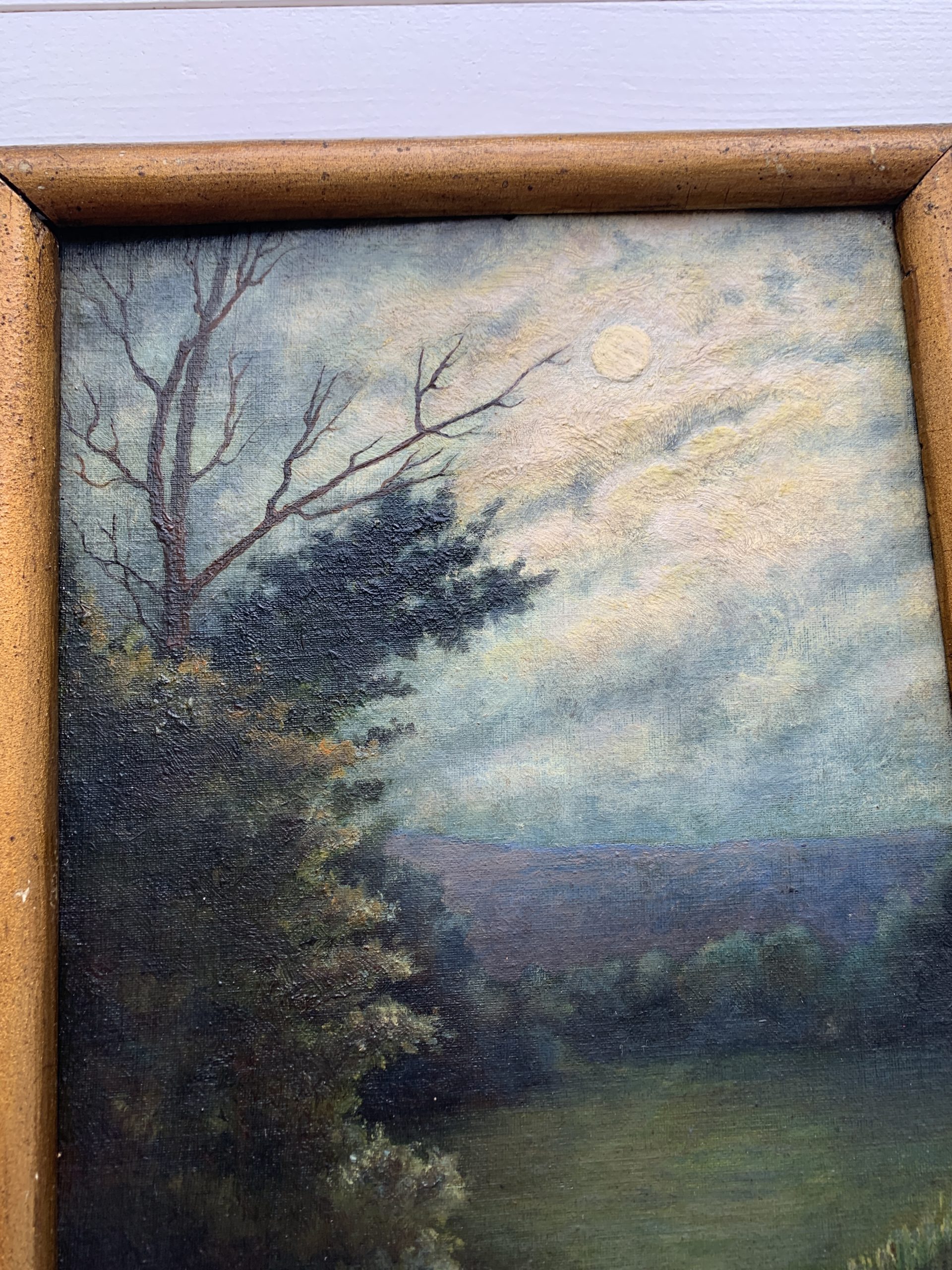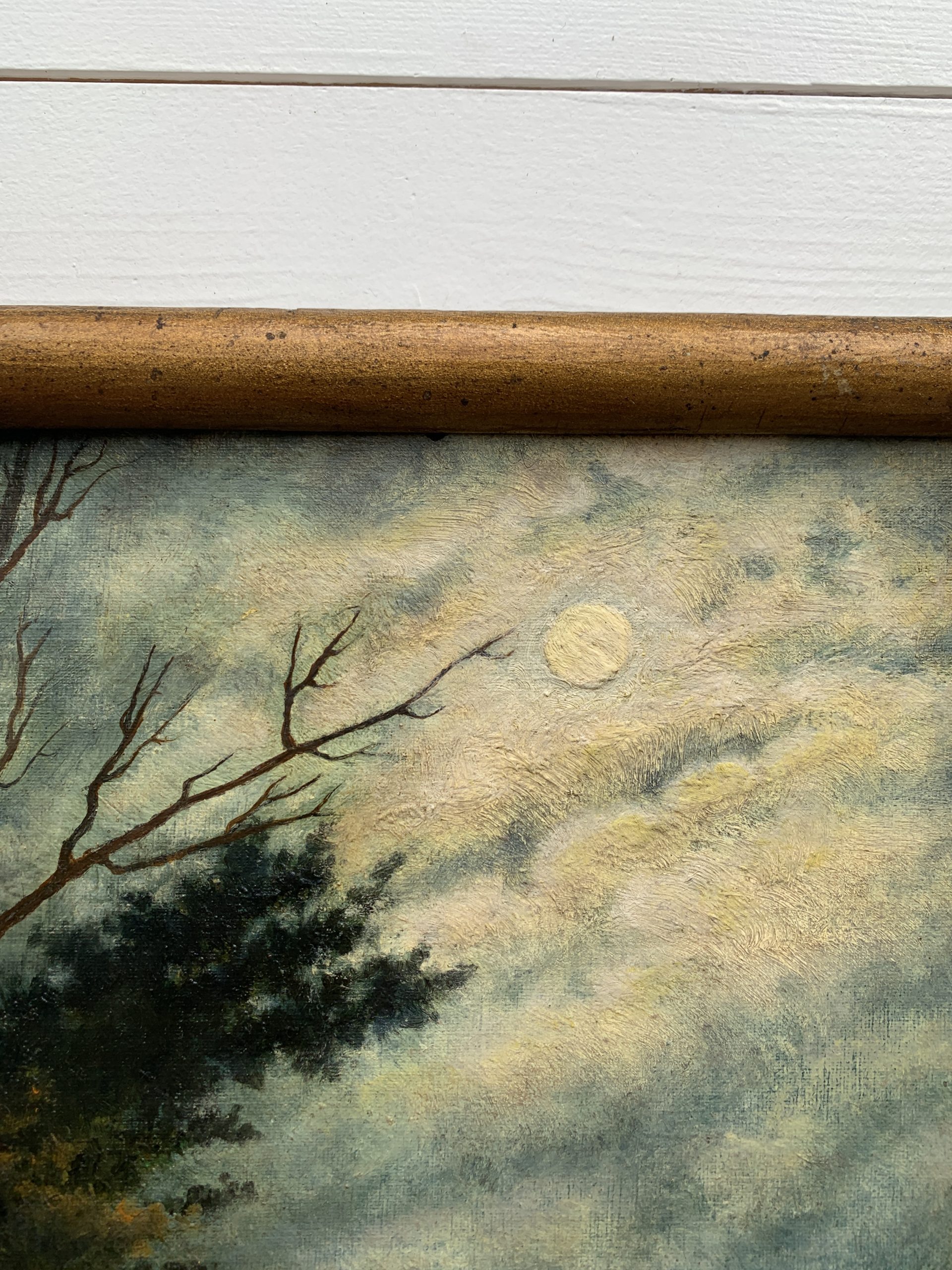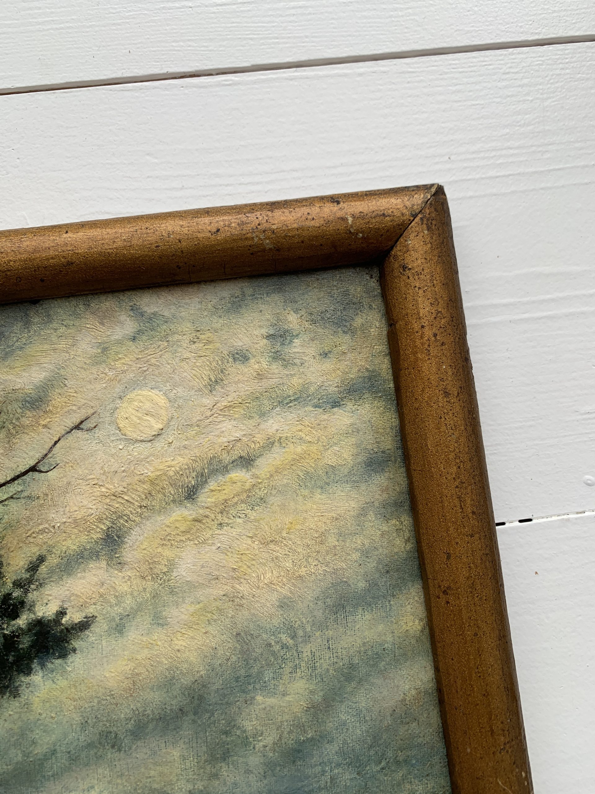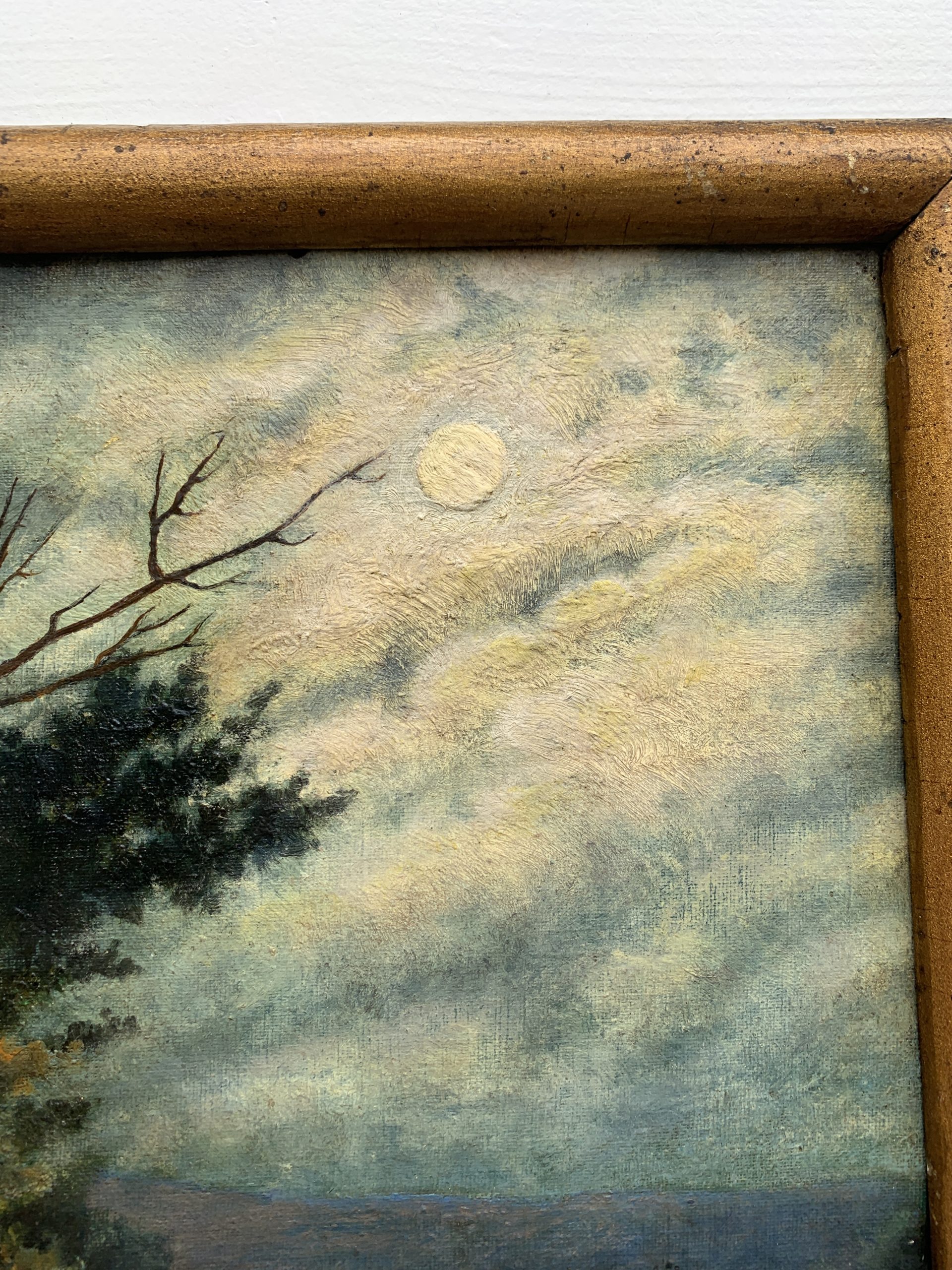 Rupture de stockSuperbe huile sur carton ancienne représentant un clair de lune.