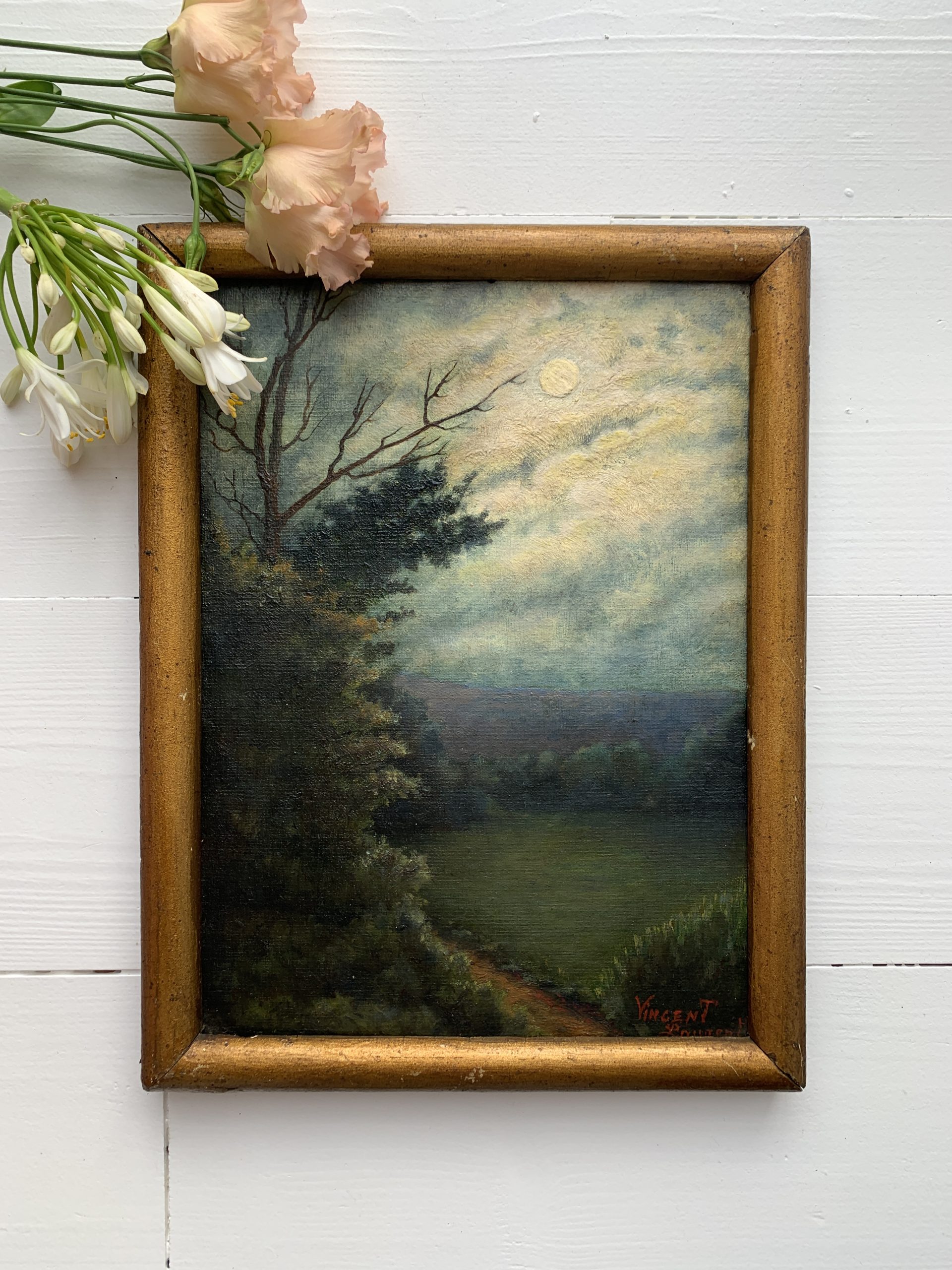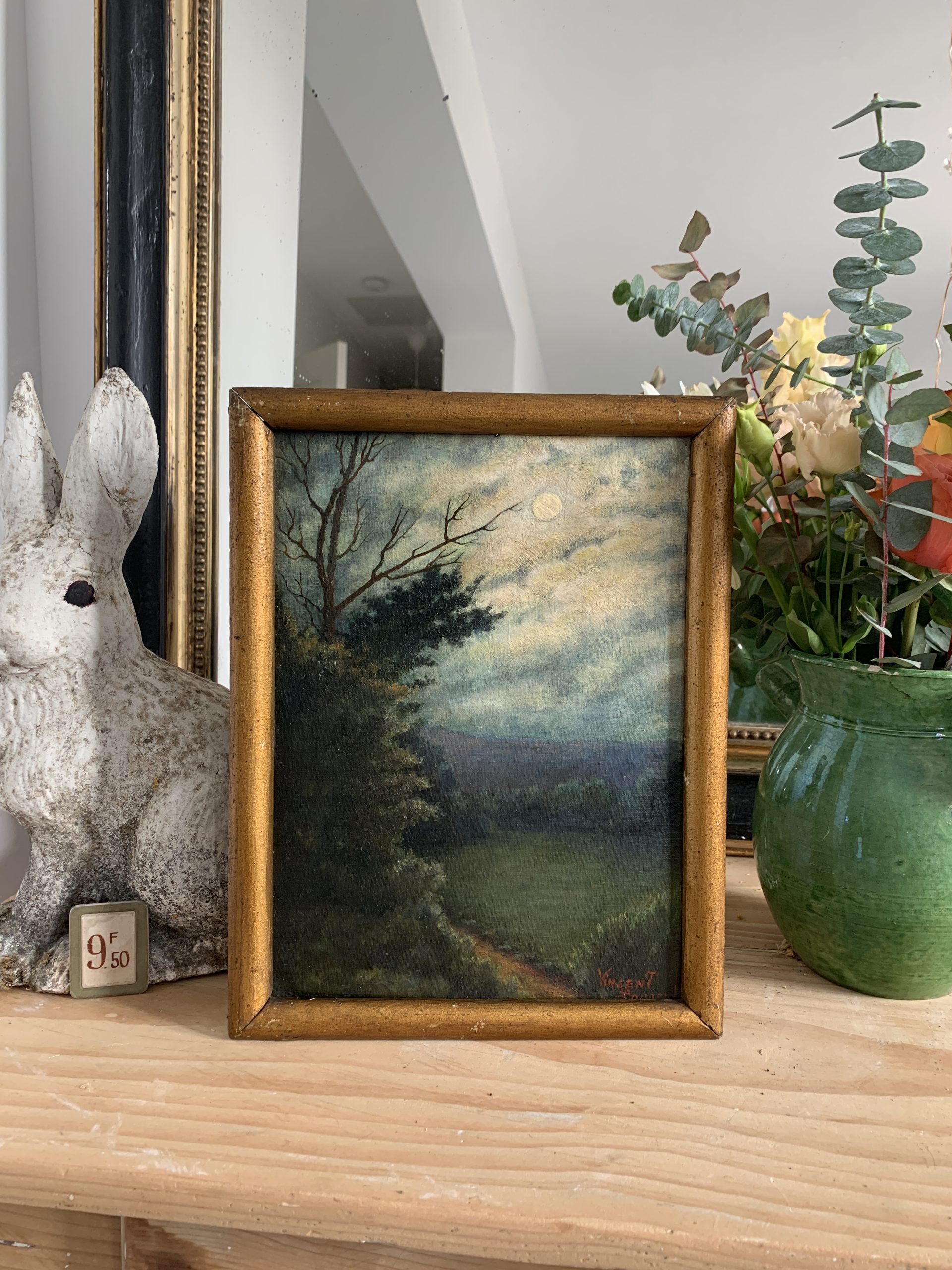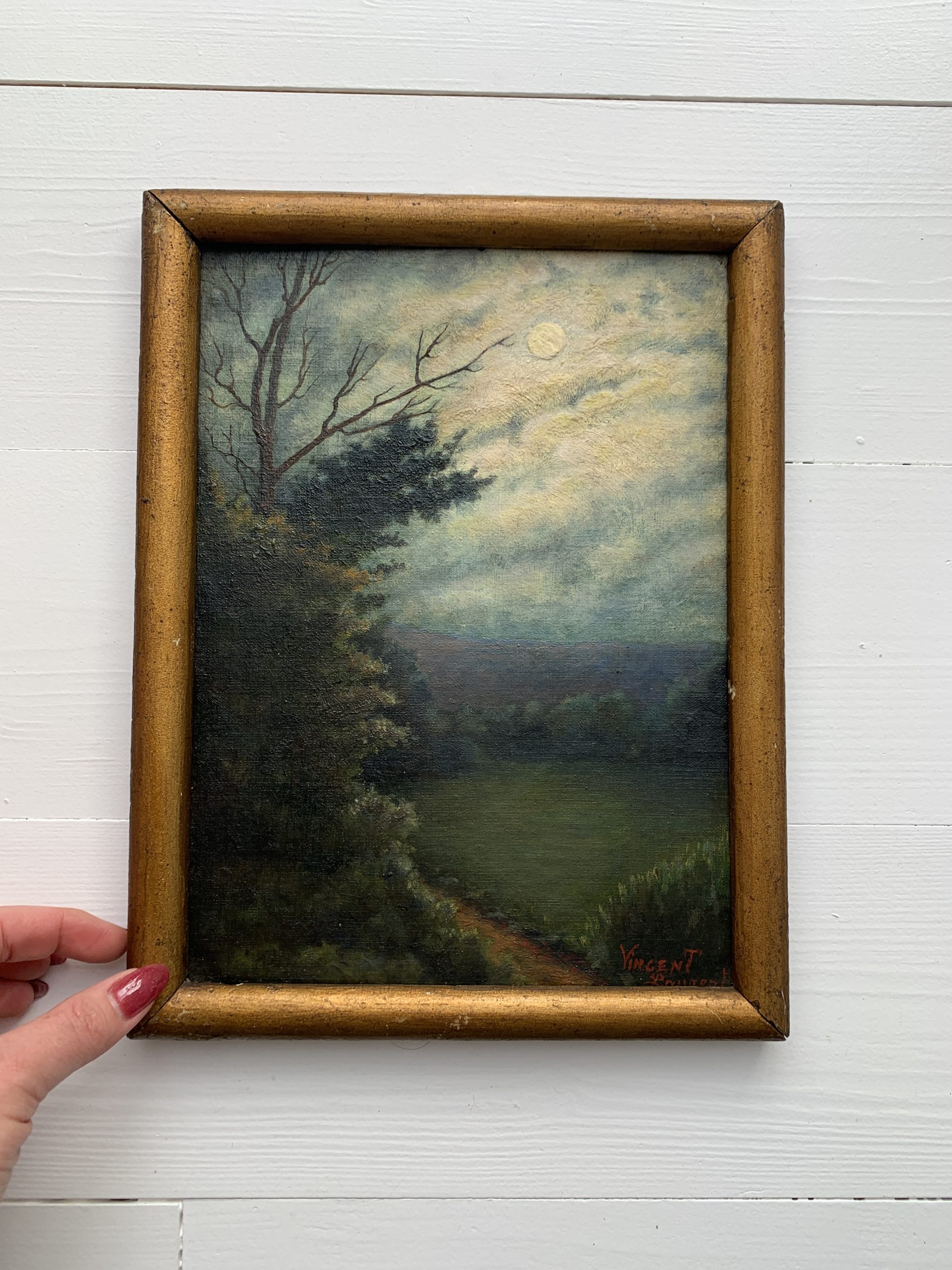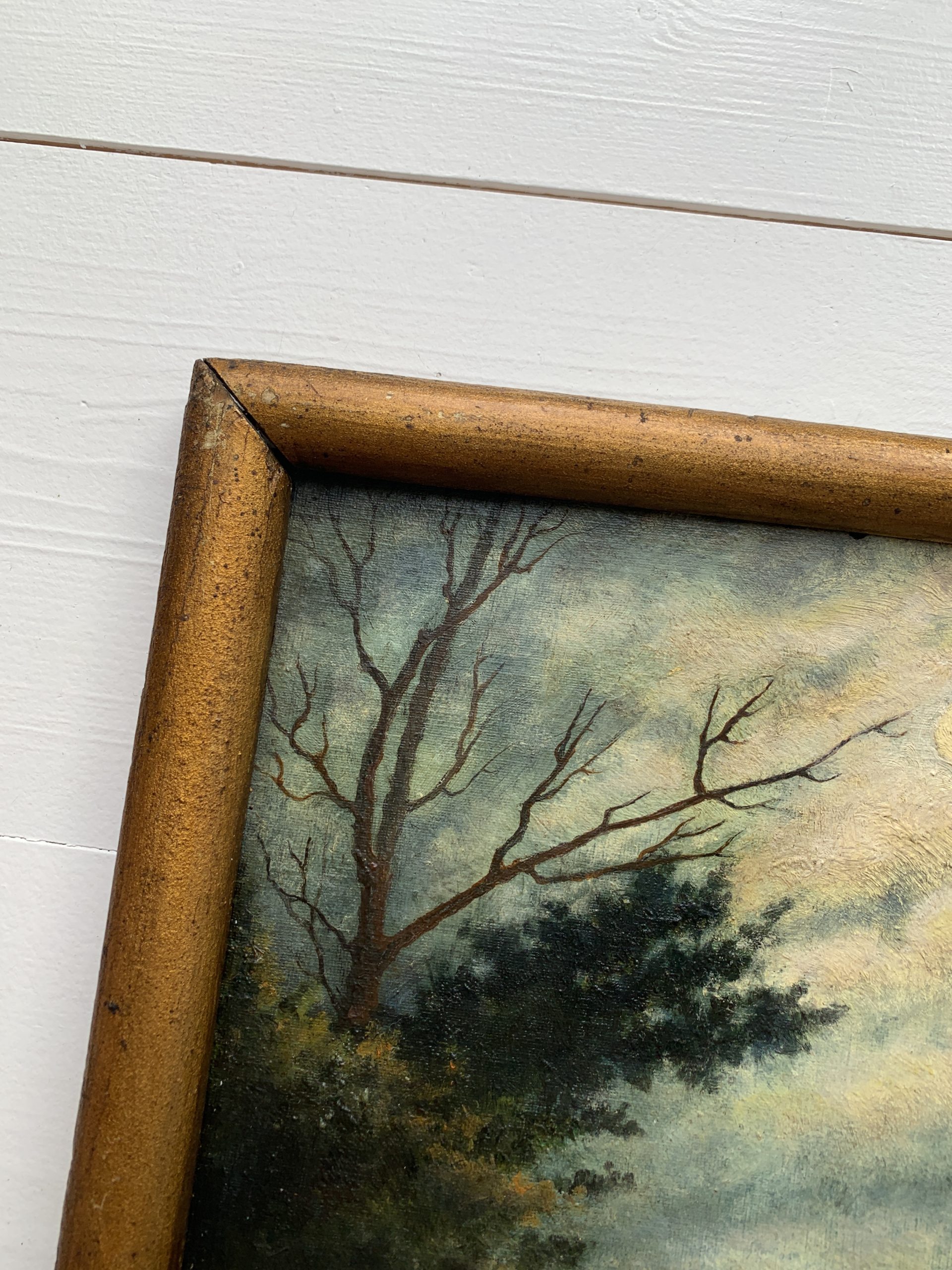 Rupture de stockSuperbe huile sur carton ancienne représentant un clair de lune.