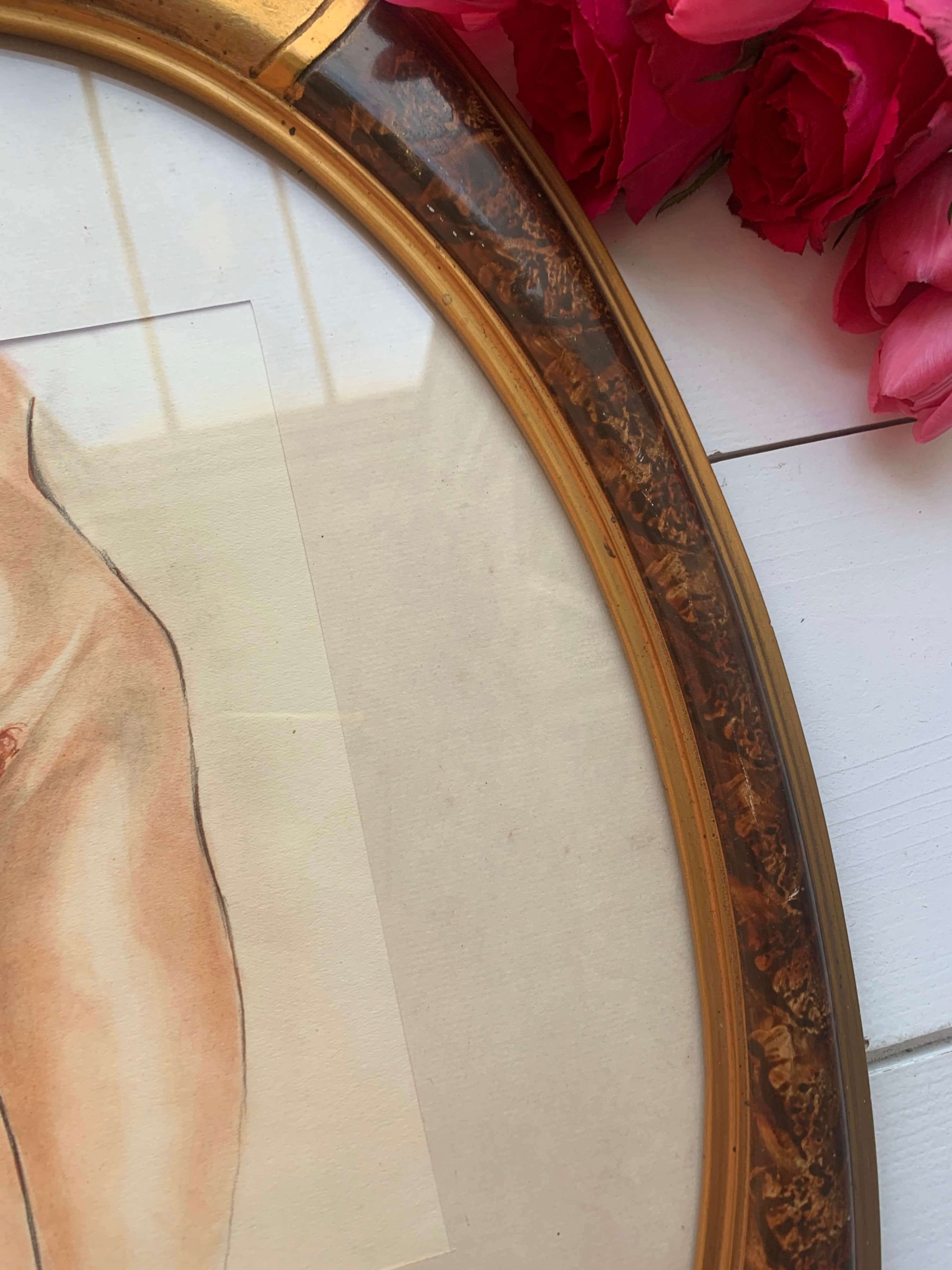 Elle est encadrée dans un superbe cadre ovale datant de la même époque. La cadre est vitré.