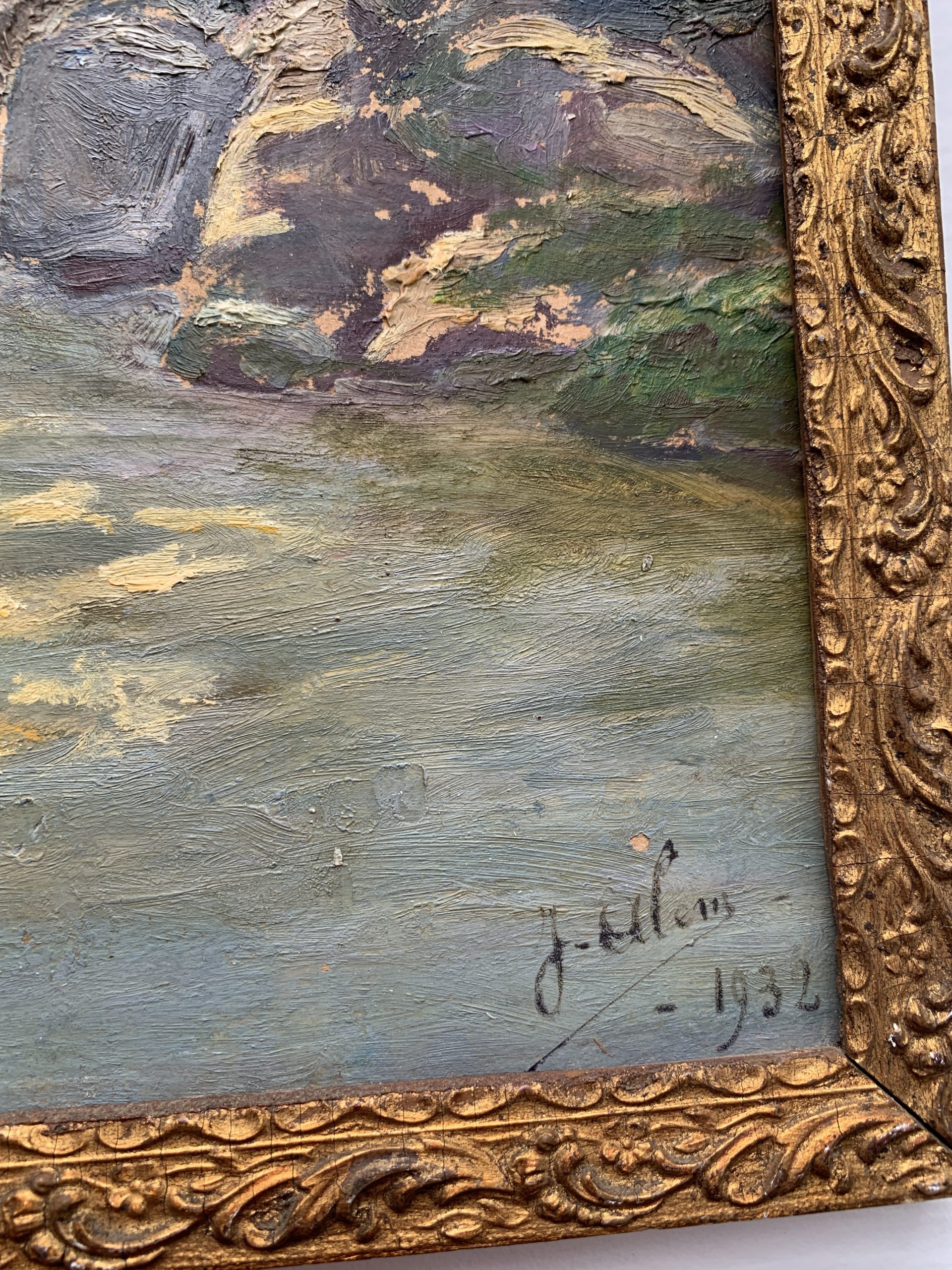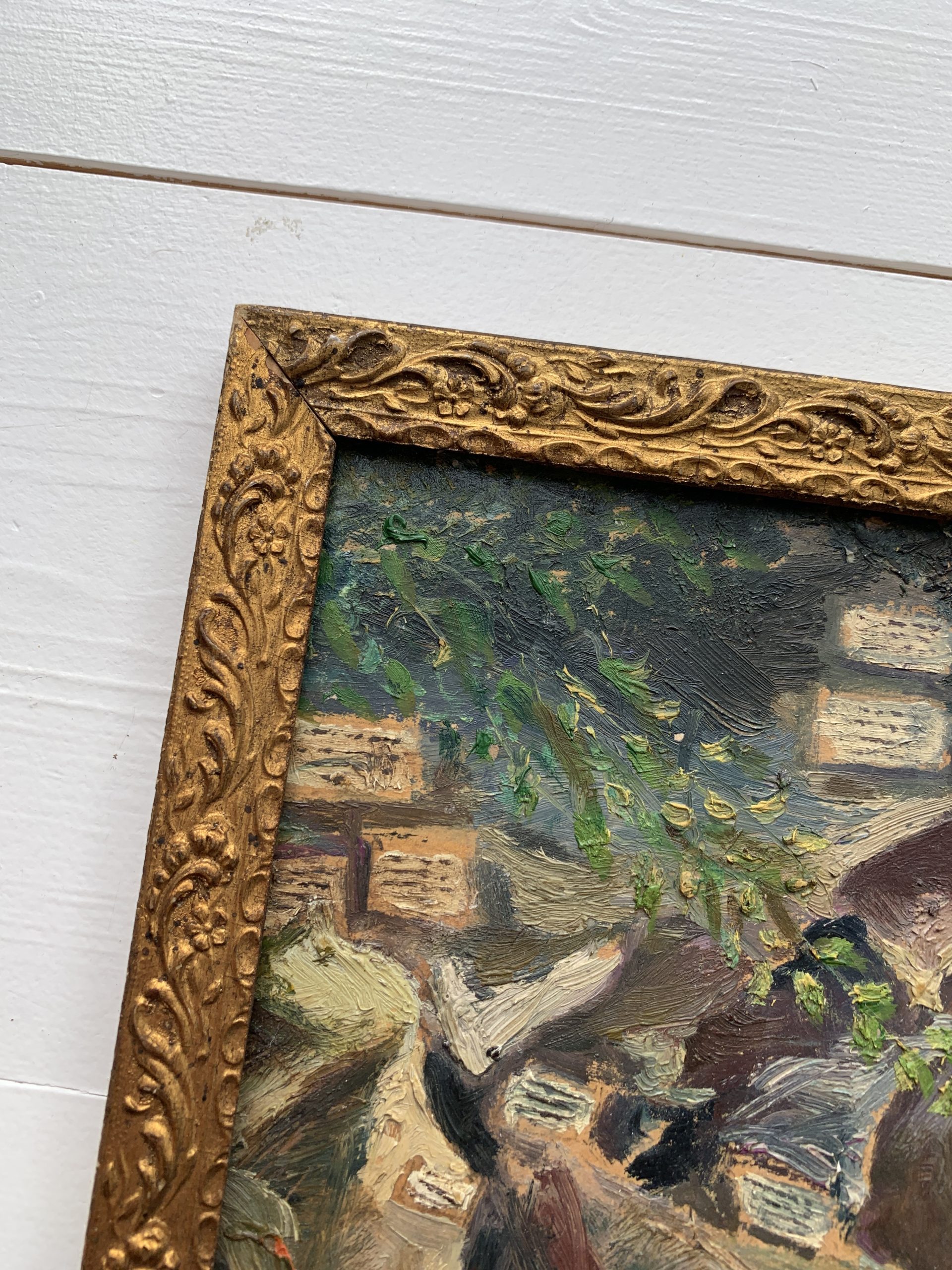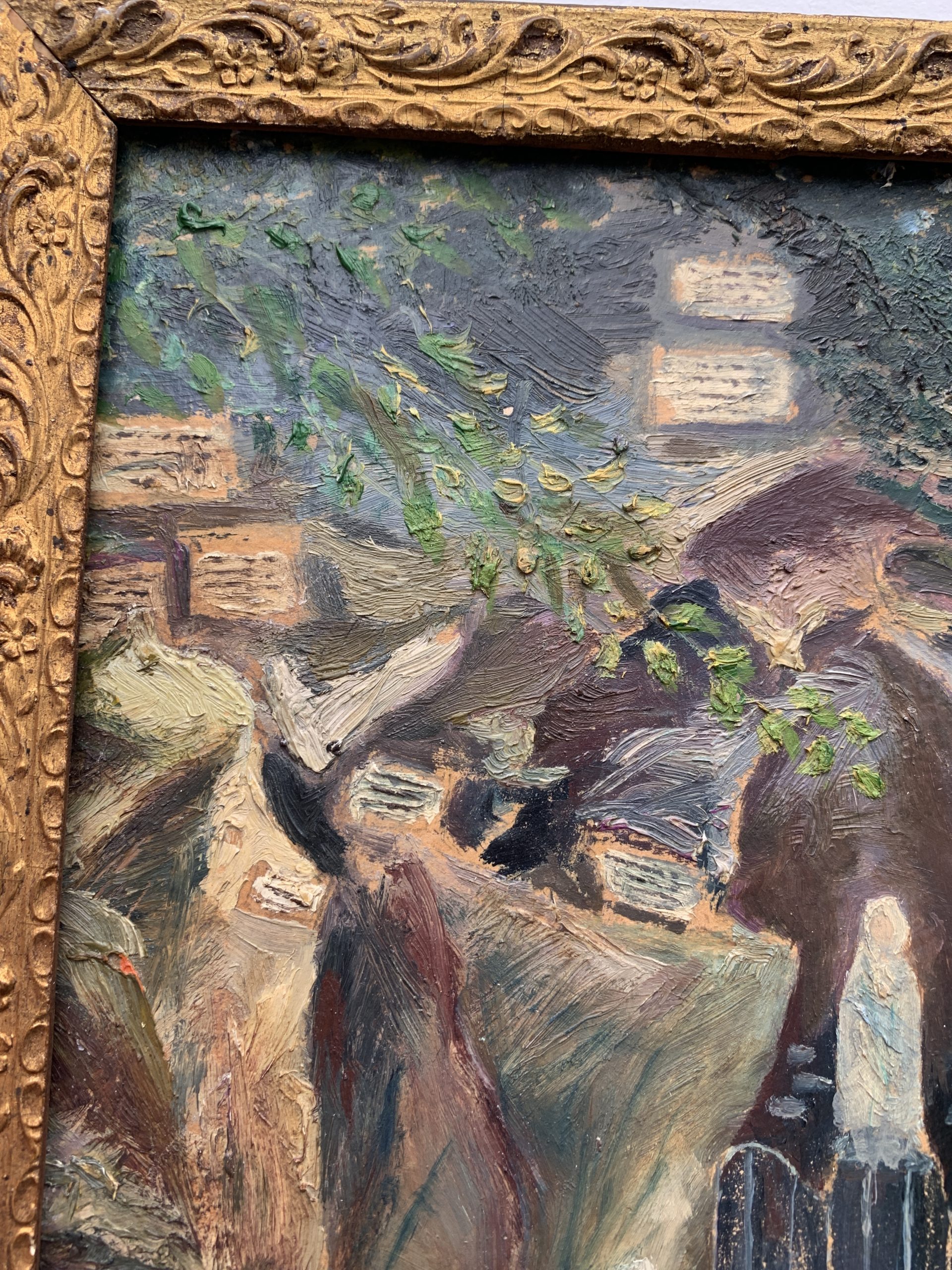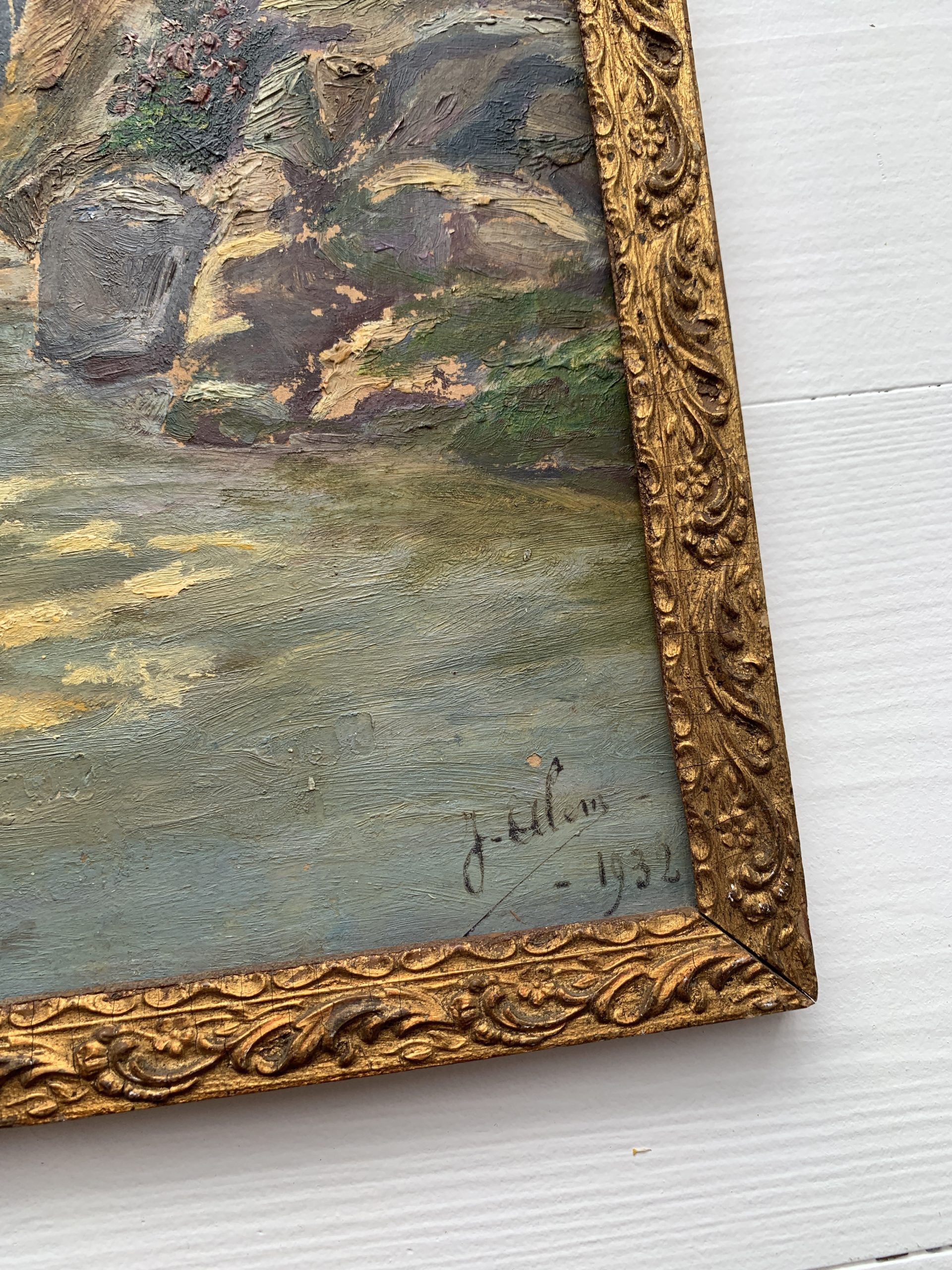 Rupture de stockHuile sur carton ancienne représentant une reproduction de la grotte de Lourdes à Thonon les bains.