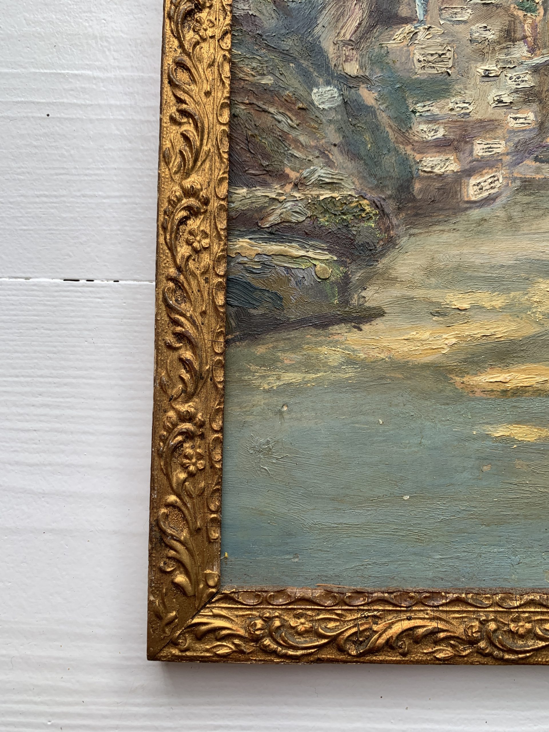 Elle est encadrée dans un cadre 1900 en bois et stuc doré.