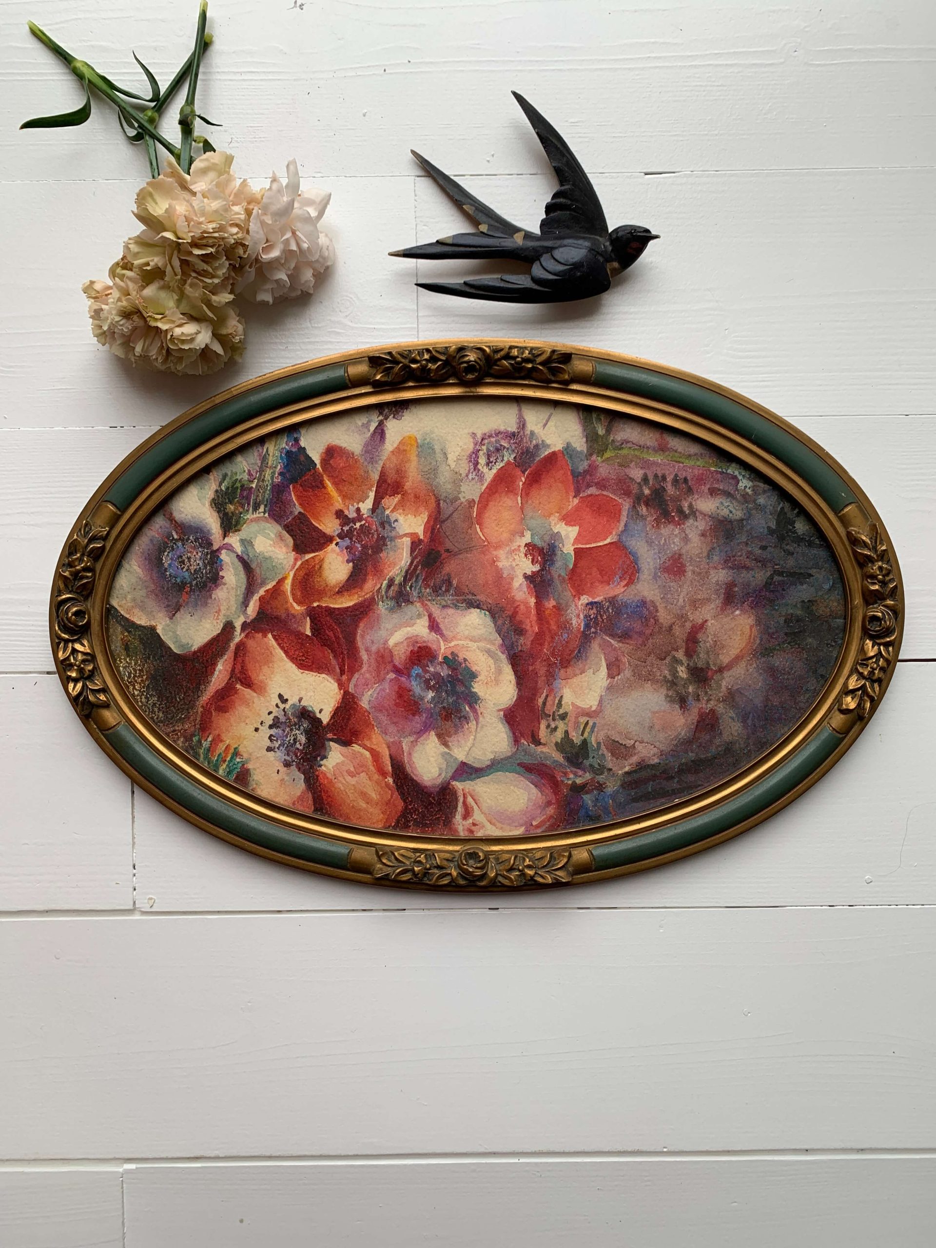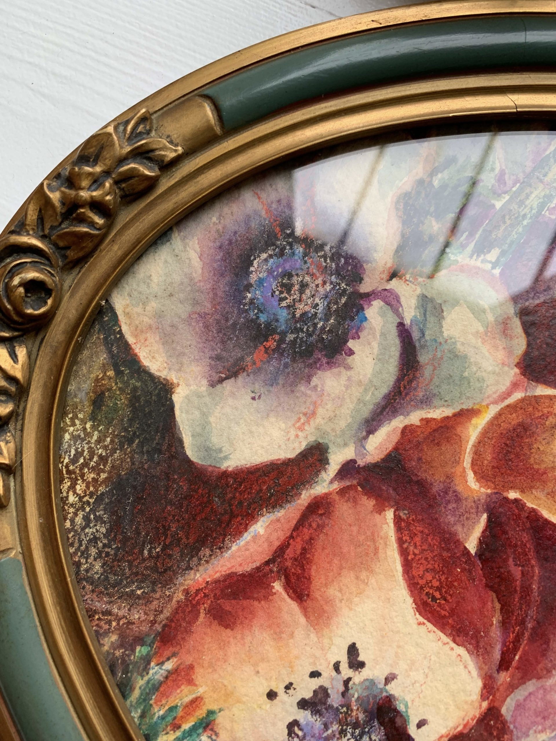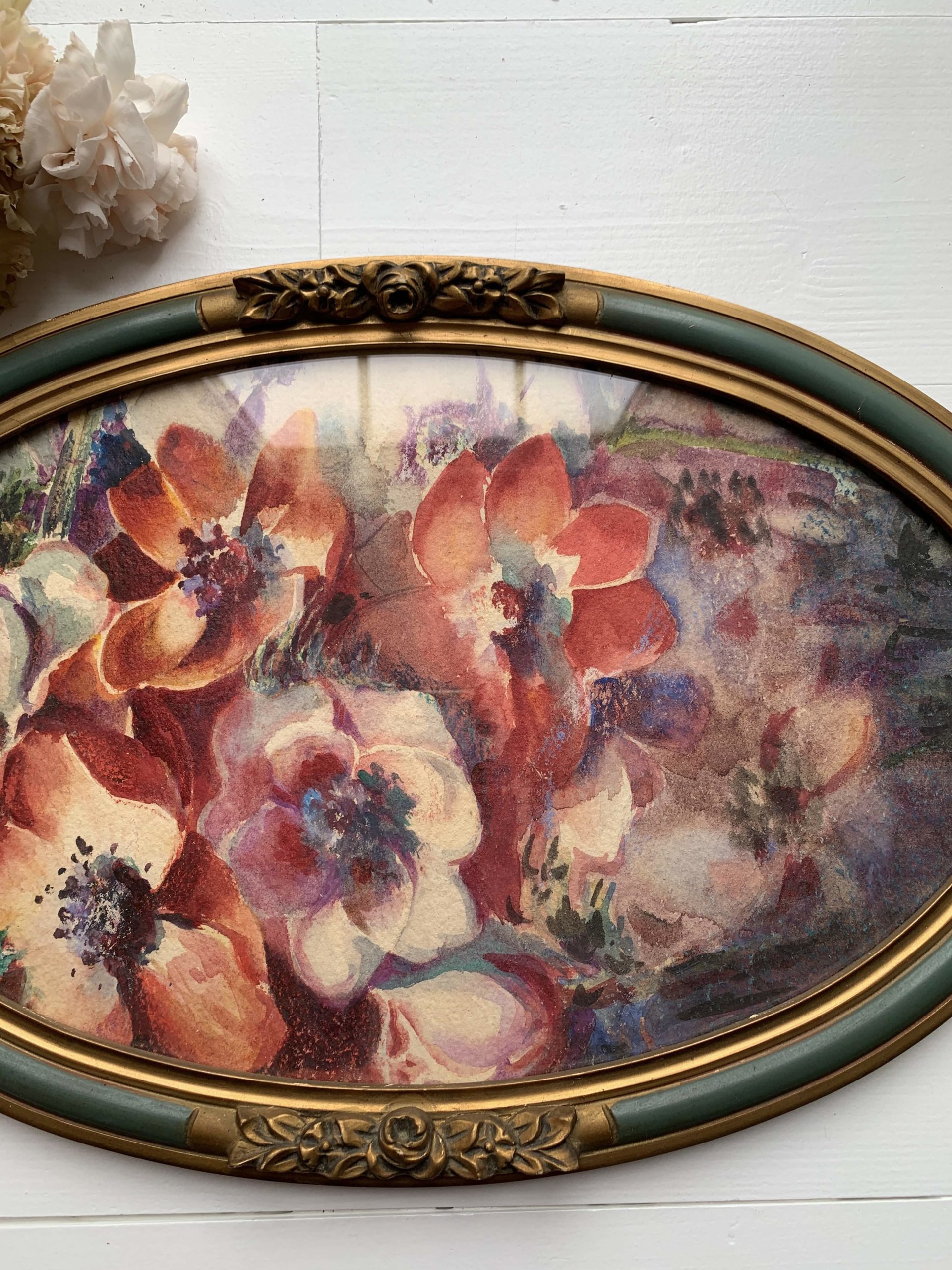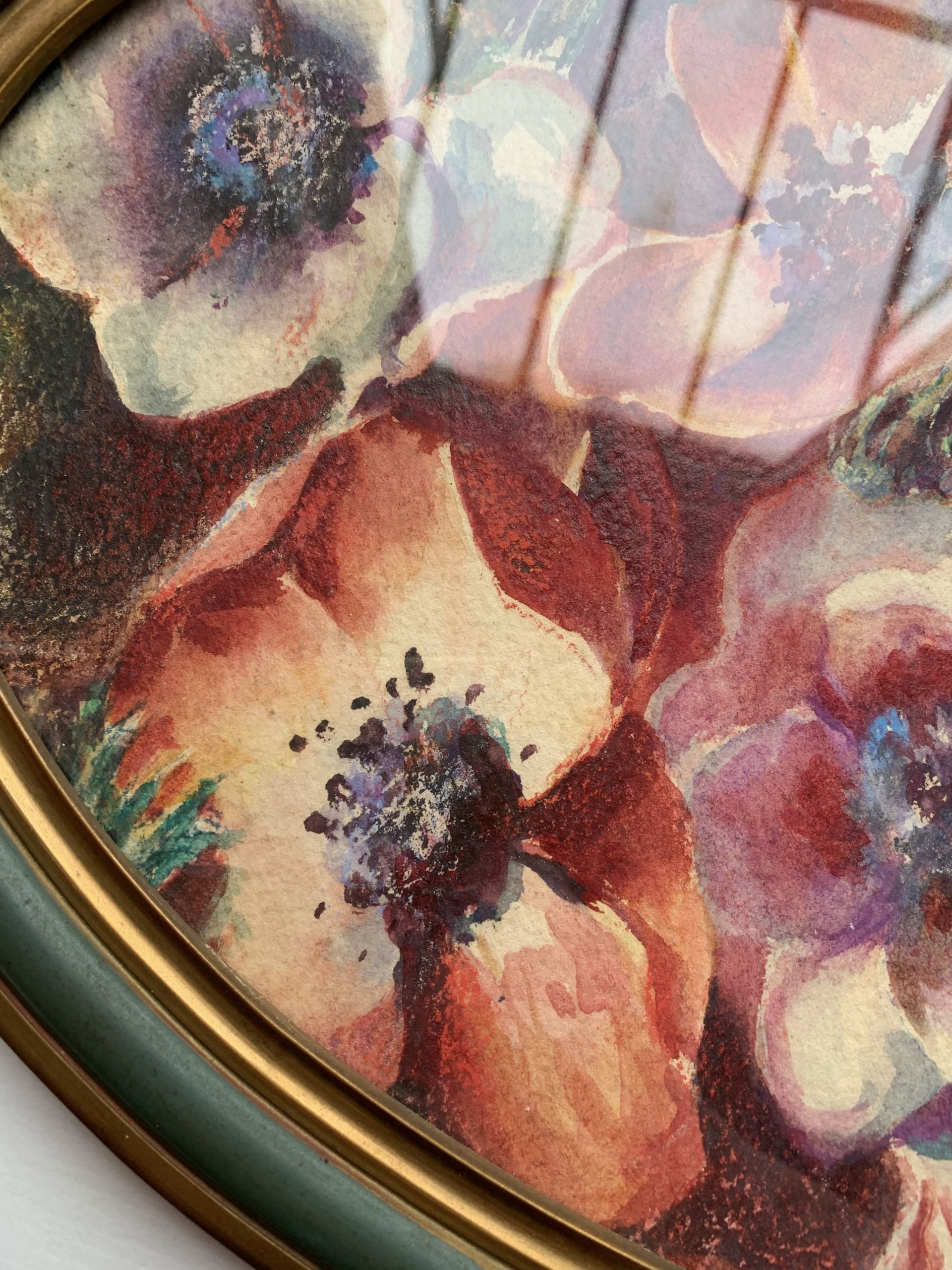 Rupture de stockMagnifique aquarelle/pastel sur papier vers 1930 représentant des anémones.